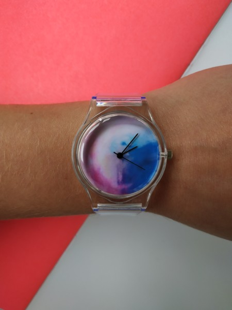- Колір циферблату – градієнт, рожевий з блакитним.