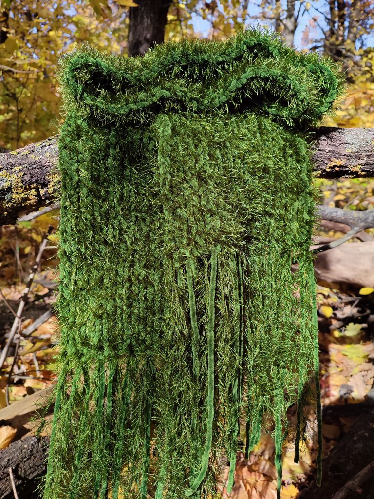Шарф, що імітує мох — унікальний аксесуар для тих, хто хоче додати природного шарму у свій образ. Цей оригінальний шарф ніби транслює атмосферу лісу, вражаючи глибиною кольорів та текстурою, яка змінюється під різним освітленням, подібно до справжнього моху.