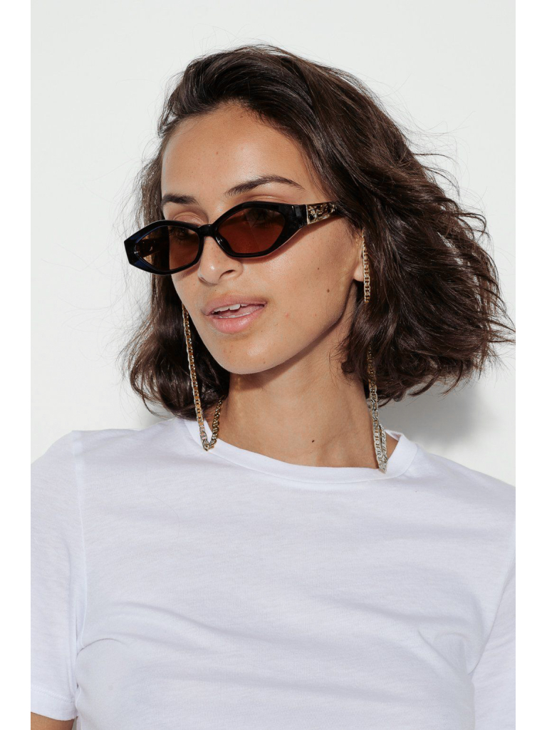 Трендові сонцезахисні вузькі фігурні окуляри з коричневими лінзами в стилі Le Specs Petit Panthere