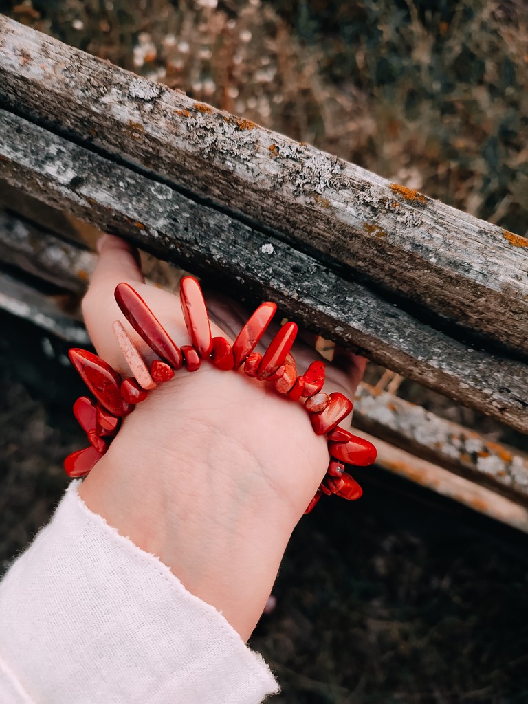 Стильний незвичний браслет з червоної натуральної яшми з колекції "Сучасна українська автентика".
