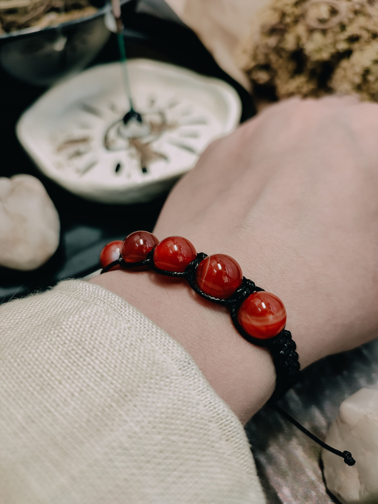 Браслет з натурального каменю сердоліку допомагає гармонізувати чакру Свадхістану, що відповідає за продовження роду, чуттєвість, сексуальність, радість, насолоду. Сердолік посилює жіноче здоров'я, рекомендується при наявності проблем з репродуктивною системою.
