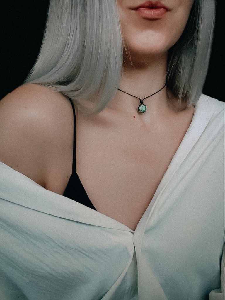 Зелений чокер моховий агат - зручна прикраса з натурального каменю на кожен день. Підвіска виступає талісманом та додає ледь помітний акцент до образу. Вироби з натуральних мінералів мають потужні властивості. Купити чокер з натуральним каменем моховим агатом рекомендується людям, що прагнуть до відчуття внутрішньої гармонії. Мінерал підходить для підсилення Анахати чакри, що знаходиться на рівні серця. Енергетичний центр пов'язаний з дихальною, кровоносною системою, серцем, судинами. Купити агатовий кулон чокер варто також людям, чия діяльність пов'язана з вирощуванням рослин. Камінь транслює позитив, гармонію, допомагає віднайти баланс.