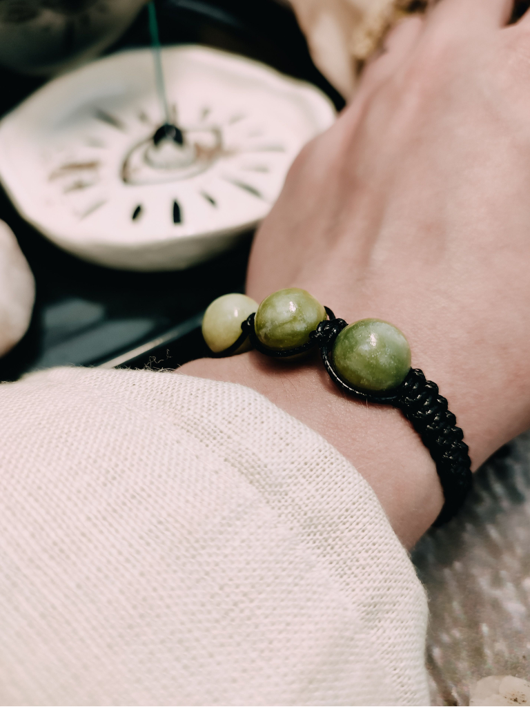 Плетений браслет шамбала з нефриту - практична прикраса для людини, що займається саморозвитком та прагне до розумного споживанння.