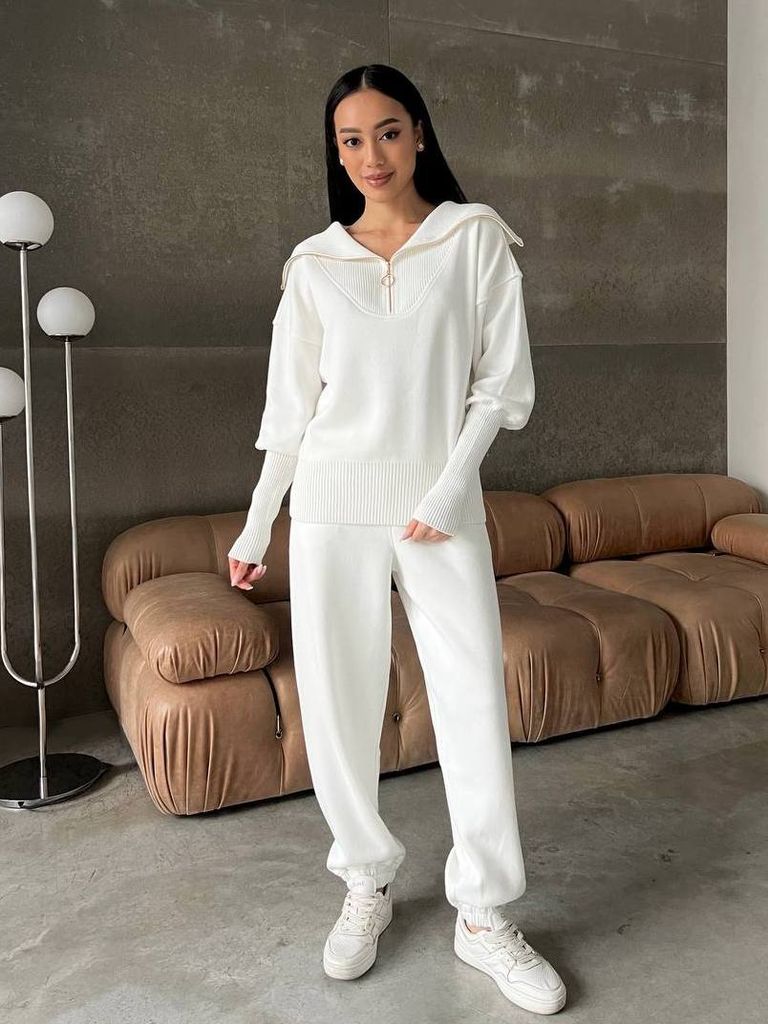 В холодну пору року в бавовняних та віскозних в’язаних костюмах зручно під час поїздок автомобілем. Вони не настільки теплі, як шерстяні, тому в сильний мороз слід доповнити образ термобілизною та верхнім одягом. Обравши бавовняний сет зимою, ви отримаєте річ, яку також можна зручно носити весною та восени.