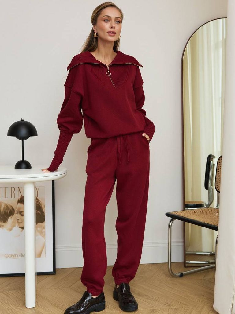Актуальні образи поєднують базу та акцент. Наприклад, молочний в’язаний костюм та червоний шарф, бордовий комплект та блакитна сумка. Стилісти радять не боятися комбінувати текстури й фактури задля актуальних поєднань.