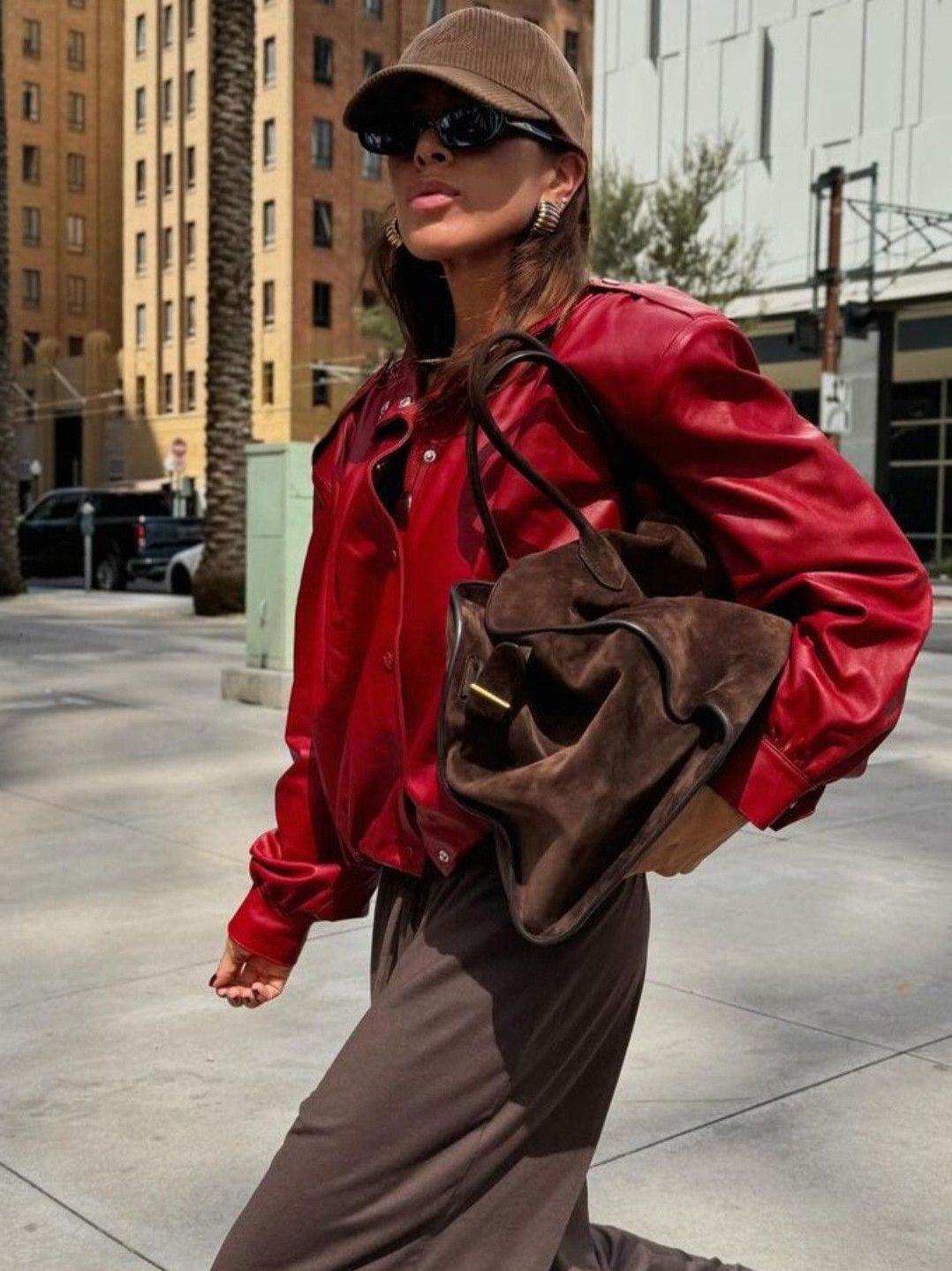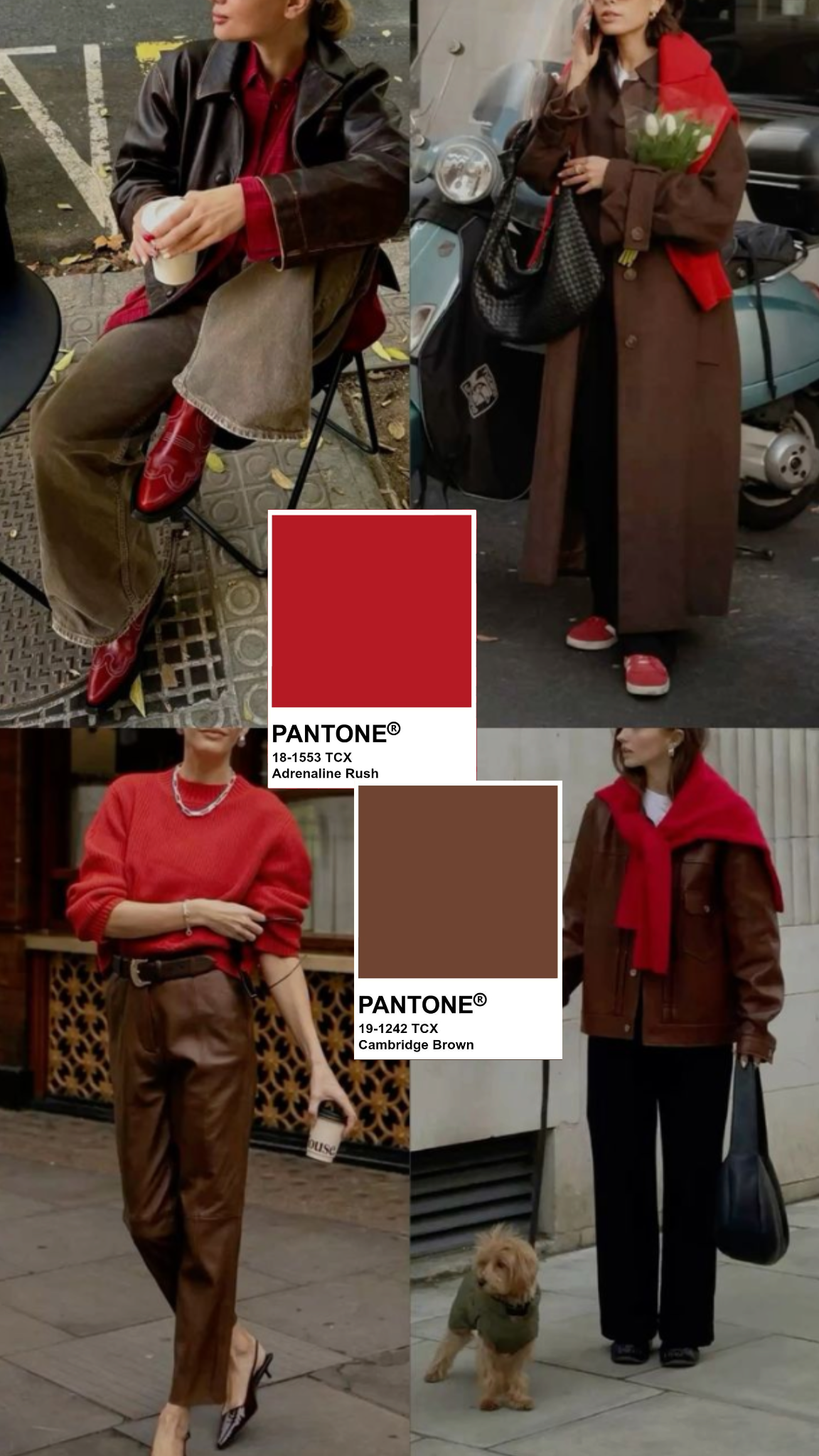 Поєднання коричневого та червоного дарує відчуття енергії. Стилісти використовують подібну комбінацію для створення сміливих, але врівноважених образів.