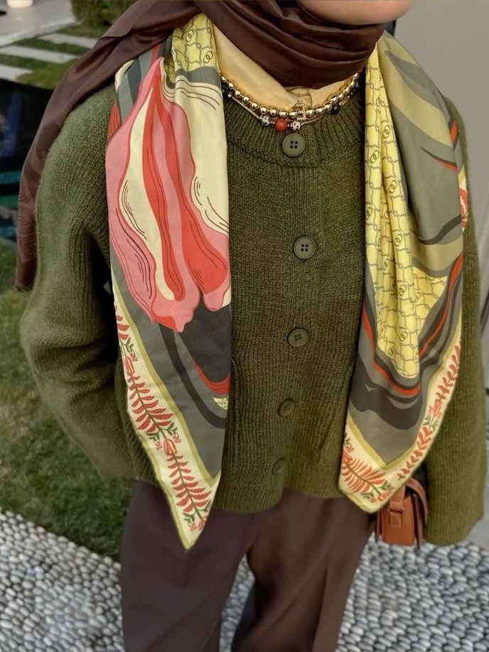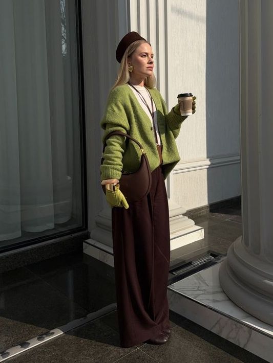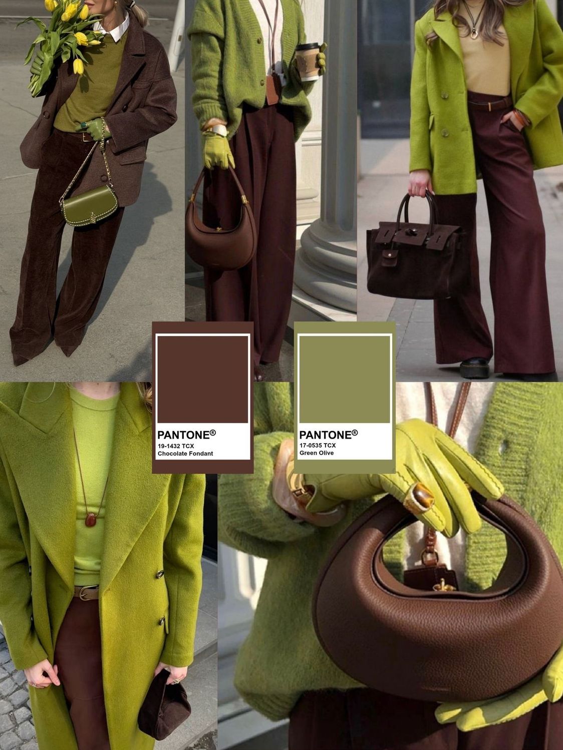 У поєднанні коричневого та оливкового оживає історія лісу: вкрита опалим листям земля та яскрава зелень моху. Комбінація транслює спокій, гармонію та екологічність, підходить жінкам, які цінують стиль casual та smart casual.