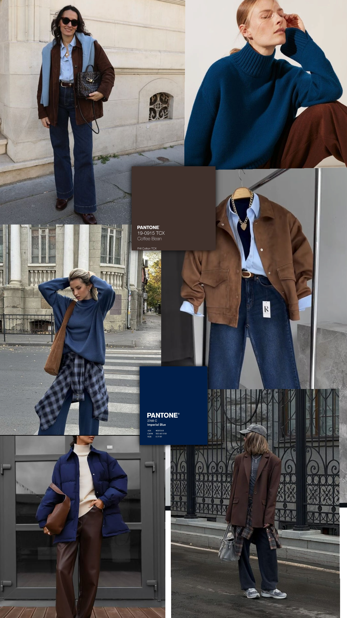Синій у тандемі з шоколадом створює стриманий міський образ. Поєднання асоціюється з надійністю, впевненістю та ретро відтінком 70-х, коли денім був символом свободи.