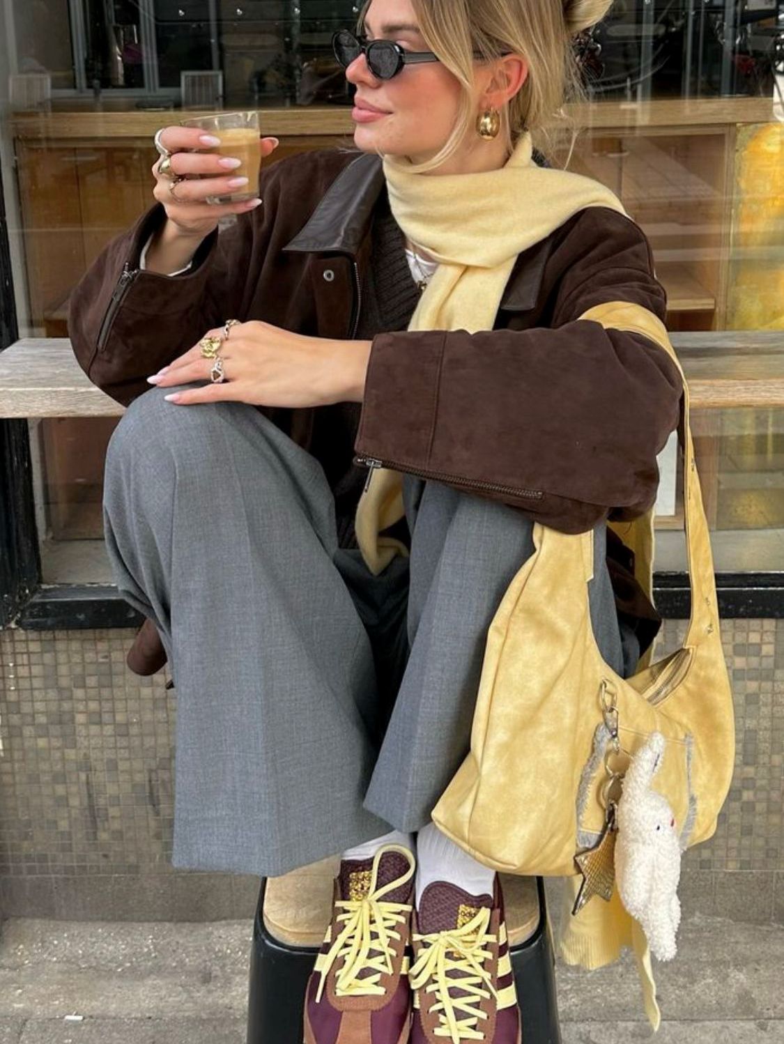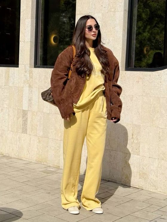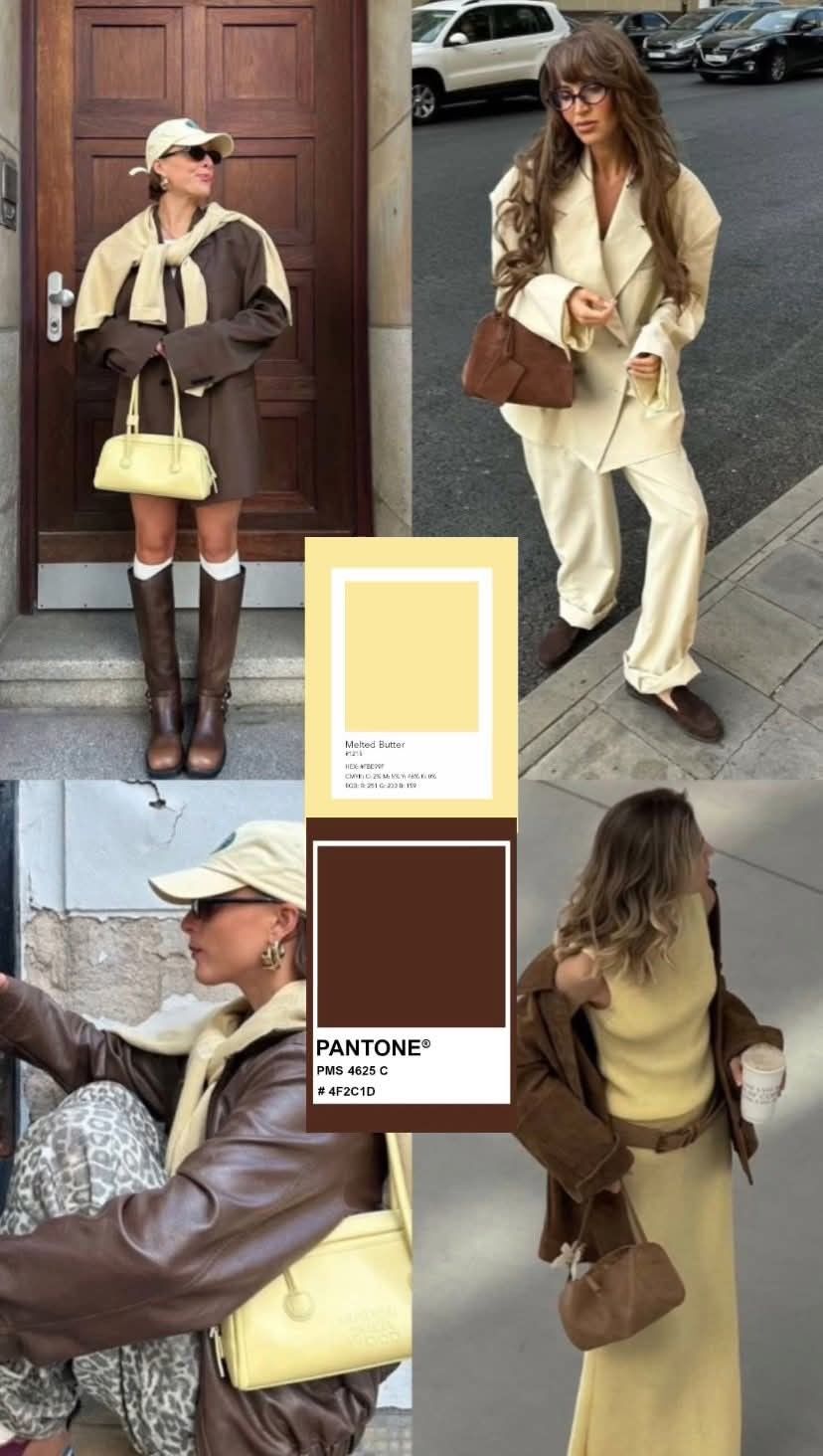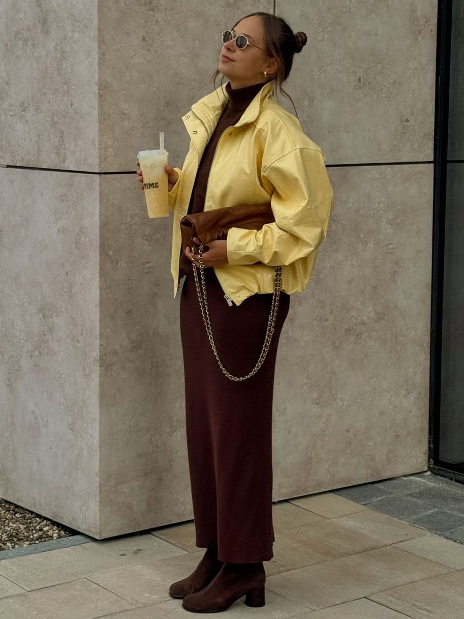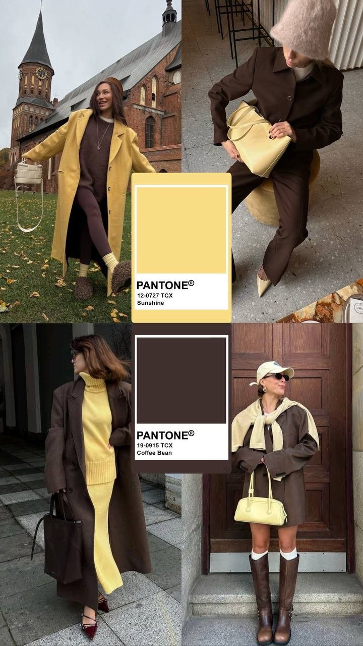 Коричневий + світлий жовтий - приклади поєднання в одязі