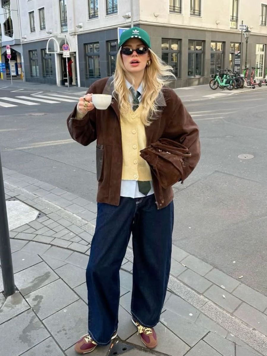 комбінації коричневого одягу, взуття та аксесуарів зі street style як приклад для