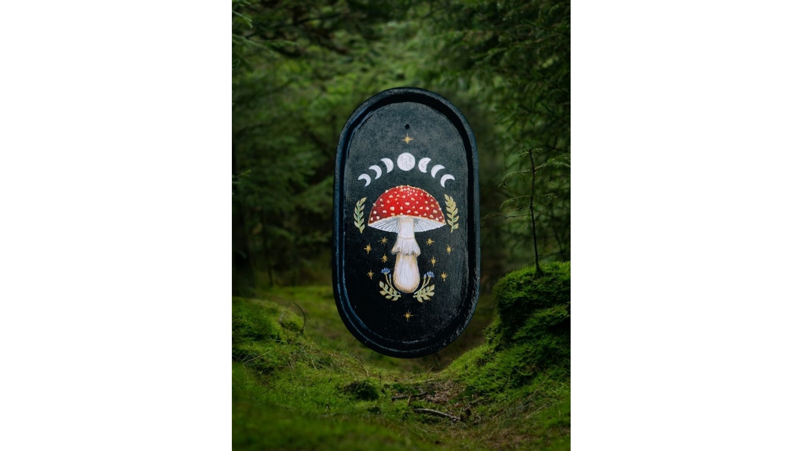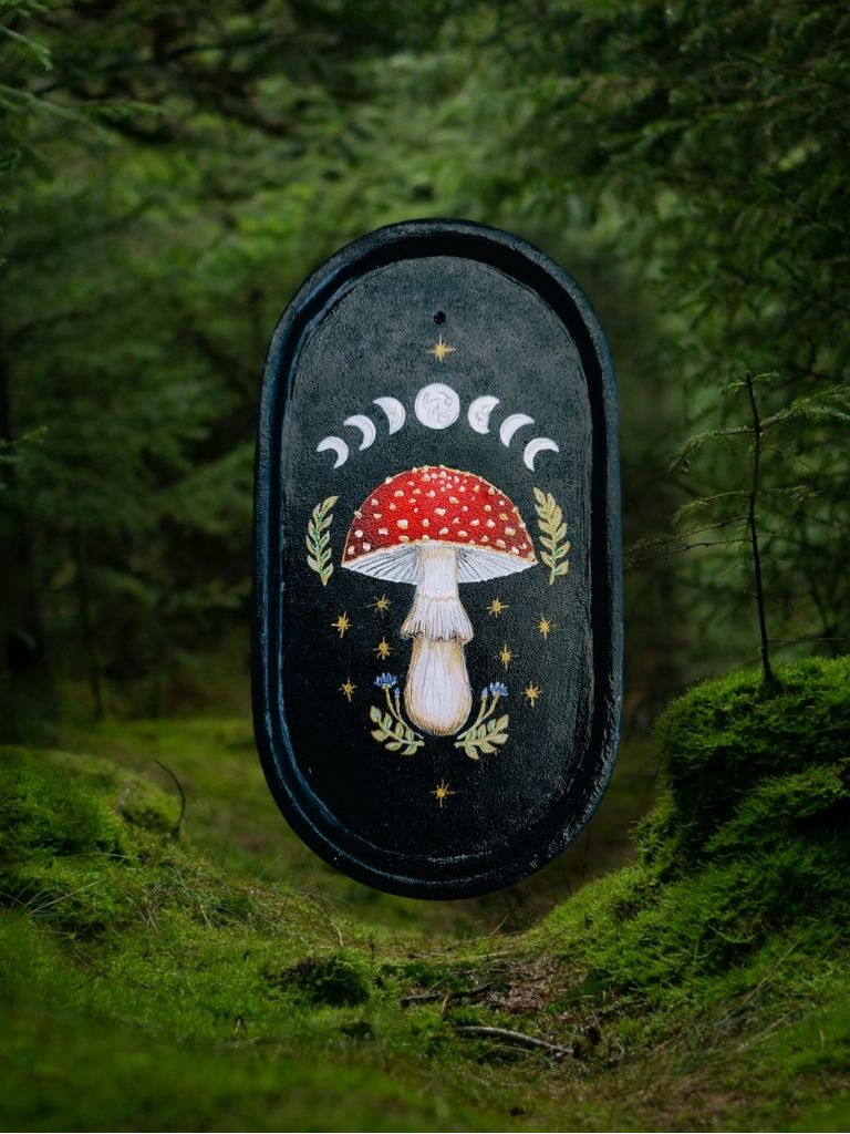 Ласкаво просимо до світу загадкових енергій та краси природи з нашою унікальною підставкою для ароматичних паличок з малюнком на ботанічну лісову тематику. Малюнок червоного мухомора - як символ просвітлення та провідника або ж просто як яскравий акцент для шанувальників грибів та природи, вирішувати вам.