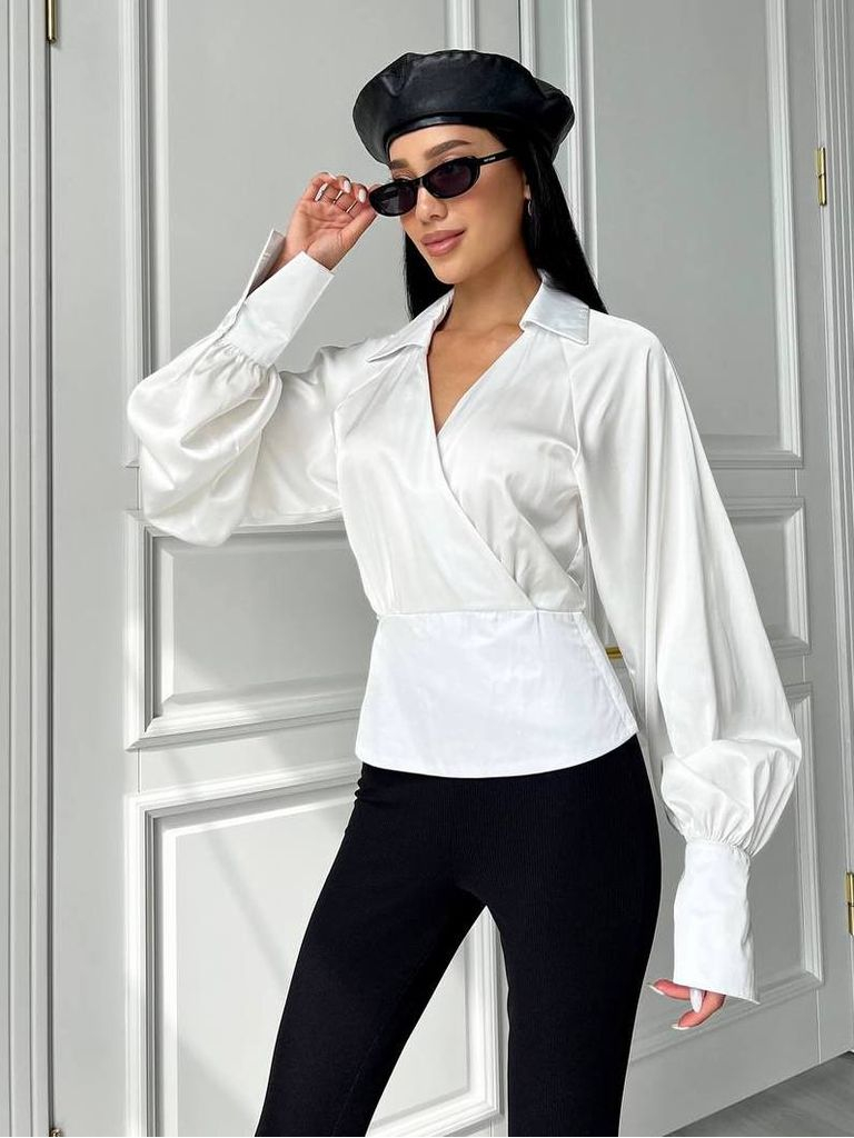 Ця блузка ідеально поєднується з різними стилями, дозволяючи створювати як вечірні, так і повсякденні луки. Для романтичного виходу варто скомбінувати її з шовковою міді-спідницею на високій посадці та лаконічними босоніжками на підборах – такий комплект виглядає вишукано і гармонійно. Для більш сміливого образу можна одягнути її з ефектними шкіряними штанами або приталеними брюками-палаццо, завершивши лук мінімалістичними прикрасами. У повсякденному стилі блузка чудово доповнить джинси із завищеною талією та класичні лофери або ботильйони, створюючи стильний аутфіт для прогулянки чи побачення.