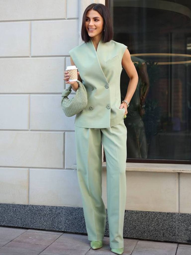 Брючний костюм з двобортним жилетом — це вдале поєднання стриманої класики та сучасної виразності. Він ідеально підходить як для ділових зустрічей, так і для особливих подій, коли хочеться виглядати впевнено й елегантно. Тканина костюмна з віскозою комфортна до тіла, має делікатну фактуру, а підкладка з штучного шовку додає виробу м’якості та акуратного силуету.