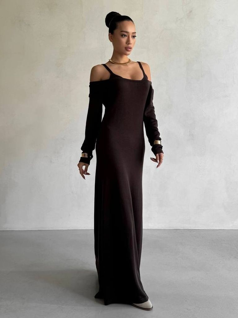 Бавовняна в'язана довга сукня на плечі з топом — втілення елегантності та сучасної простоти в одному виробі. Виготовлена зі 100% бавовни преміальної якості, вона забезпечує надзвичайний комфорт, м'якість і здатність дихати, що робить її ідеальним вибором для міжсезоння. Тонка трикотажна в’язка створюється безпосередньо на в’язальних станках в Україні, що підкреслює індивідуальний підхід до кожної деталі та забезпечує довговічність виробу.