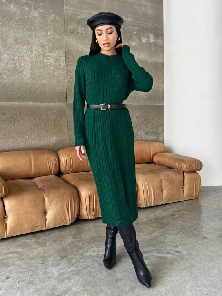 Стильна в'язана сукня прямого силуету в широкий рубчик - база поза часом та модою. Зручна модель, що не сковує рухів. Довжина, що однаково стильно поєднується з високими чоботами, черевиками, ботильонами на підборах та навіть кросівками. Сукня виконана з якісної сумішної пряжі. 50% вовни в складі зумовлює м'якість та теплоту, у той час як акрил додає міцності й зносостійкості. Виріз горловини круглий, горловина не прилягає занадто тісно. Рукави та низ плаття оздоблено в'язкою в дрібний рубчик. Замовити та купити безшовну сукню лапша в рубчик прямого крою недорого можна в нас накладним платежем з передоплатою на доставку. Відправляємо в Київ, Дніпро, Житомир, Львів, Запоріжжя, Тернопіль, Одесу, Івано-Франківськ, Суми, Кропивницький, Полтаву, Черкаси та будь-який населений пункт України.