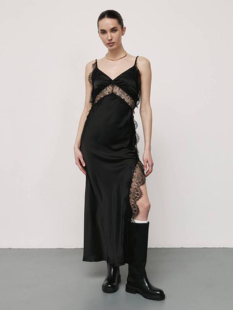 Замовити та купити чорну шовкову сукню з мереживом на тонких бретельках недорого можна в нас накладним платежем з передоплатою на доставку. Відправляємо в Київ, Дніпро, Житомир, Львів, Запоріжжя, Тернопіль, Одесу, Івано-Франківськ, Суми, Кропивницький, Полтаву, Черкаси та будь-який населений пункт України.