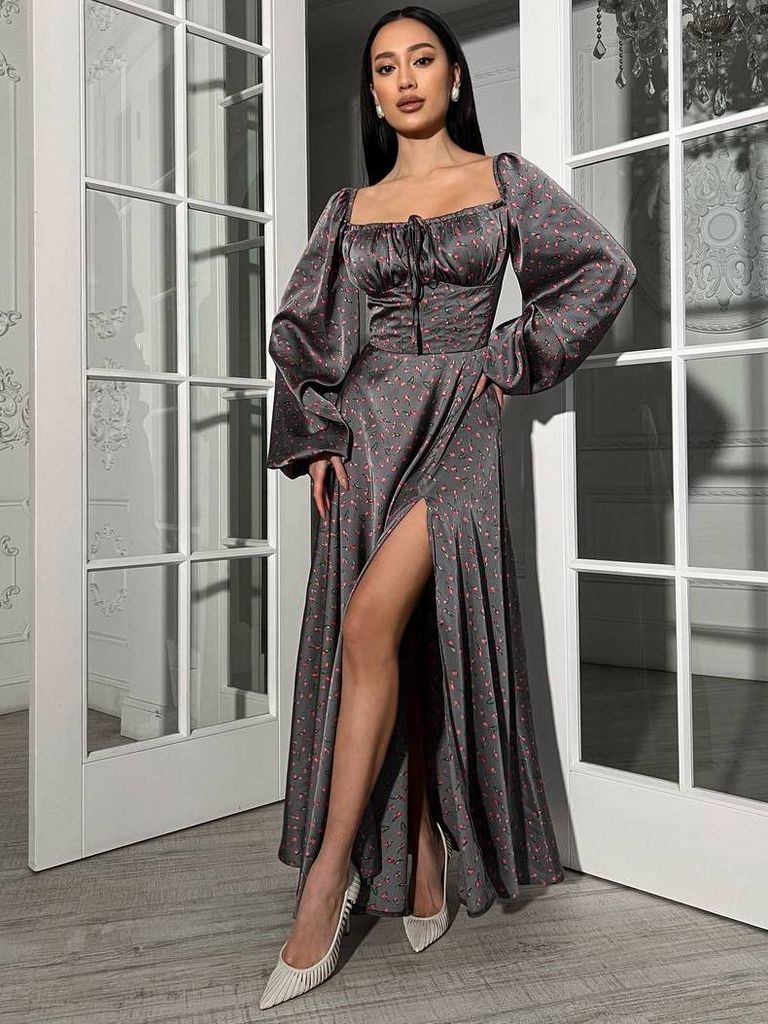 Розкішна довга сукня з об'ємними рукавами виконана з ніжного шовку в дрібний квітковий орнамент. Верх на кулісці. Можна носити з оголеними плечима, фіксувати посадку індивідуально. на рівні грудей драпірування. Завдяки крою сукня чудово сідає на фігури з різними об'ємами бюсту. Від лінії талії спідниця кльош донизу. З одного боку ефектний розріз на ніжці. Рукави фіксуються на зап'ястях еластичними гумками. Ця сукня стане ідеальним вбранням для особливих подій, побачень, романтичних прогулянок, свят. Замовити та купити довгу шовкову корсетну сукню з довгим рукавом в квітковий принт недорого можна в нас накладним платежем з передоплатою на доставку. Відправляємо в Київ, Дніпро, Житомир, Львів, Запоріжжя, Тернопіль, Одесу, Івано-Франківськ, Суми, Кропивницький, Полтаву, Черкаси та будь-який населений пункт України.