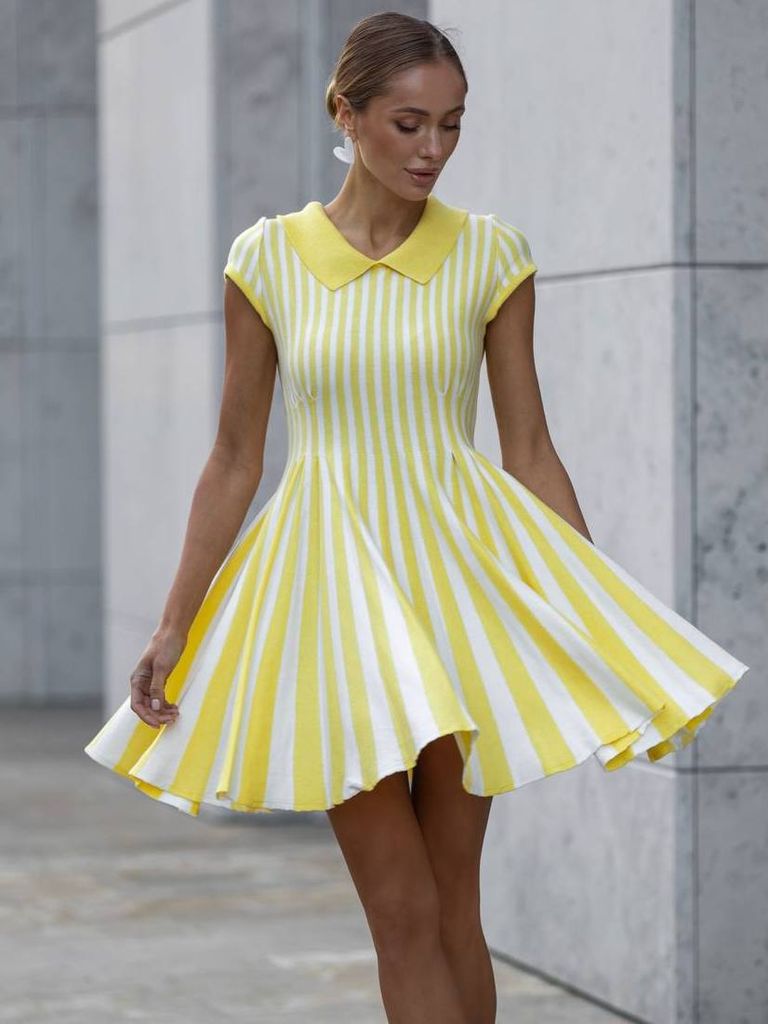 Смугаста міні сукня в стилі преппі виконана з в'язаного щільного благородного трикотажу. Завдяки натуральному складу виріб дихає, комфортно носиться та служить роками. Кокетлива модель з відкладним комірцем і коротким рукавом. Верх плаття оздоблений дрібною смужкою, низ - ширшою, що додає образу складності і одразу декларує небанальність моделі. Під грудьми акуратні защипи, які створюють мінімальне драпірування. Поділ напівсонце кльош. Замовити та купити коротку смугасту сукню з коротким рукавом і коміром недорого можна в нас накладним платежем з передоплатою на доставку. Відправляємо в Київ, Дніпро, Житомир, Львів, Запоріжжя, Тернопіль, Одесу, Івано-Франківськ, Суми, Кропивницький, Полтаву, Черкаси та будь-який населений пункт України.