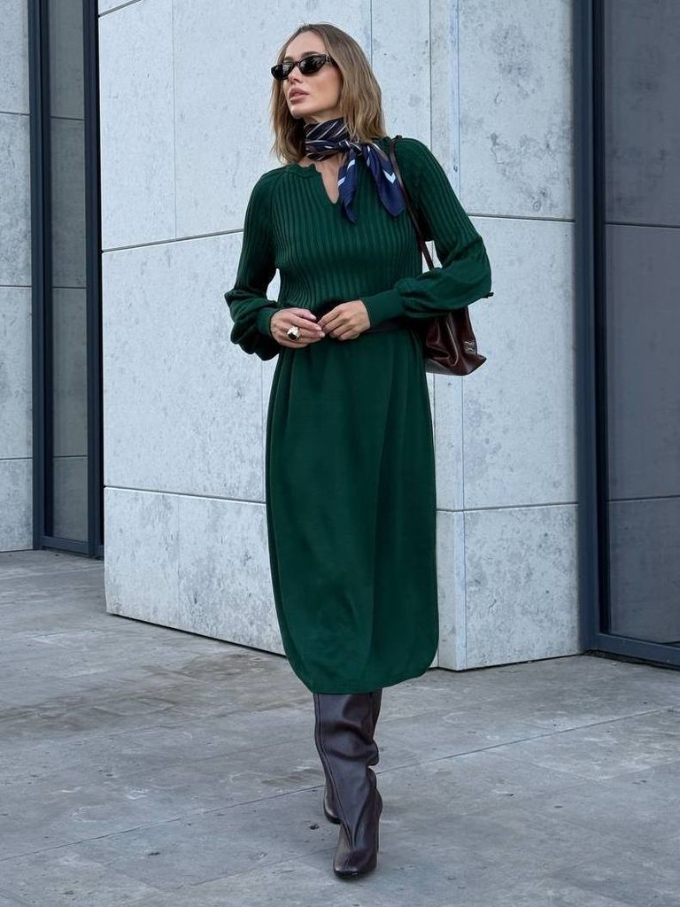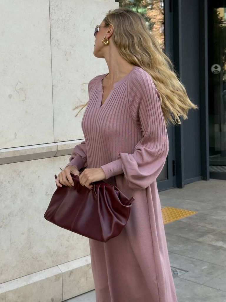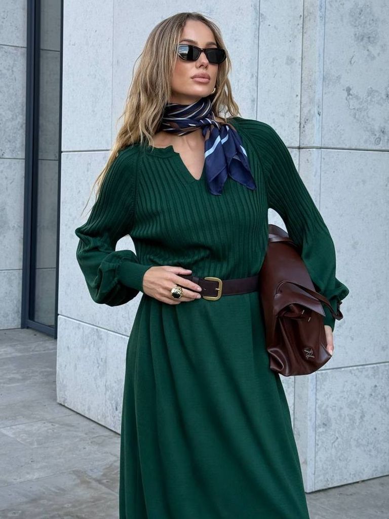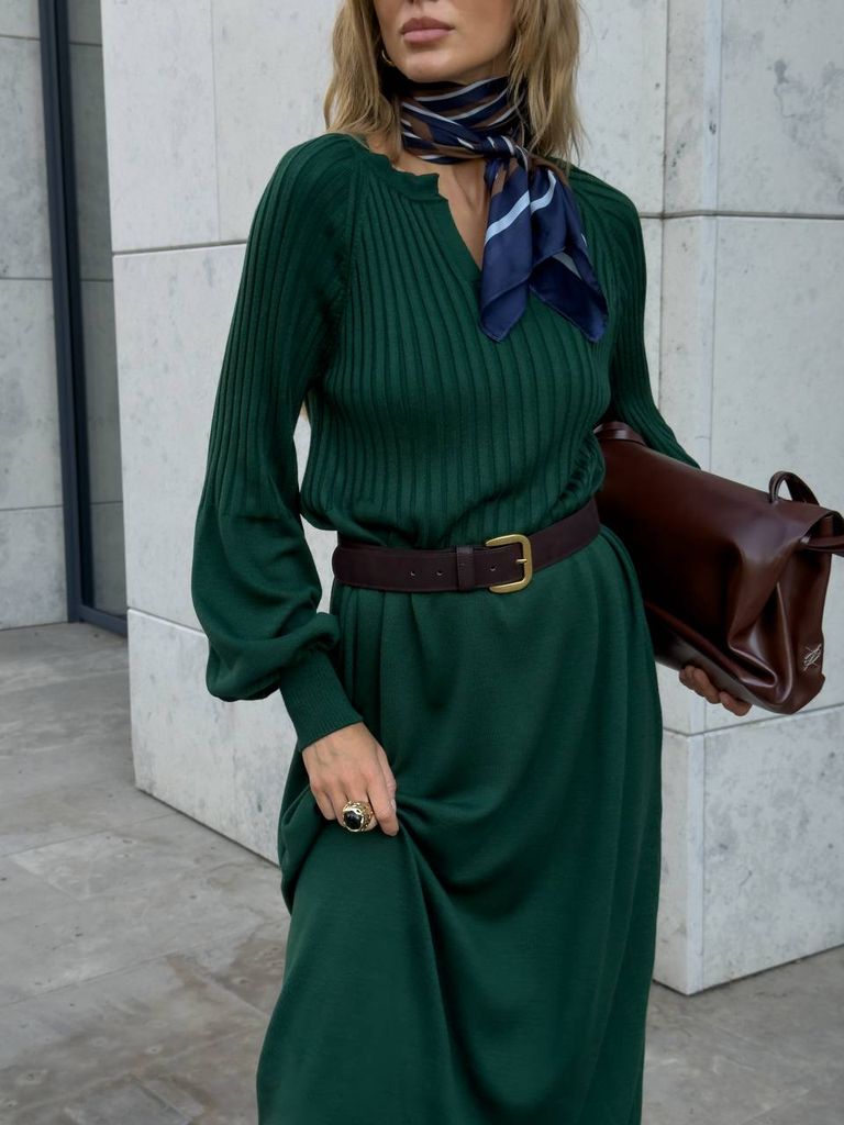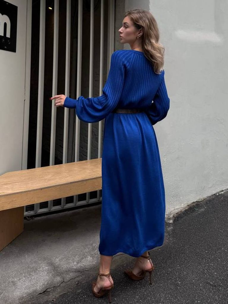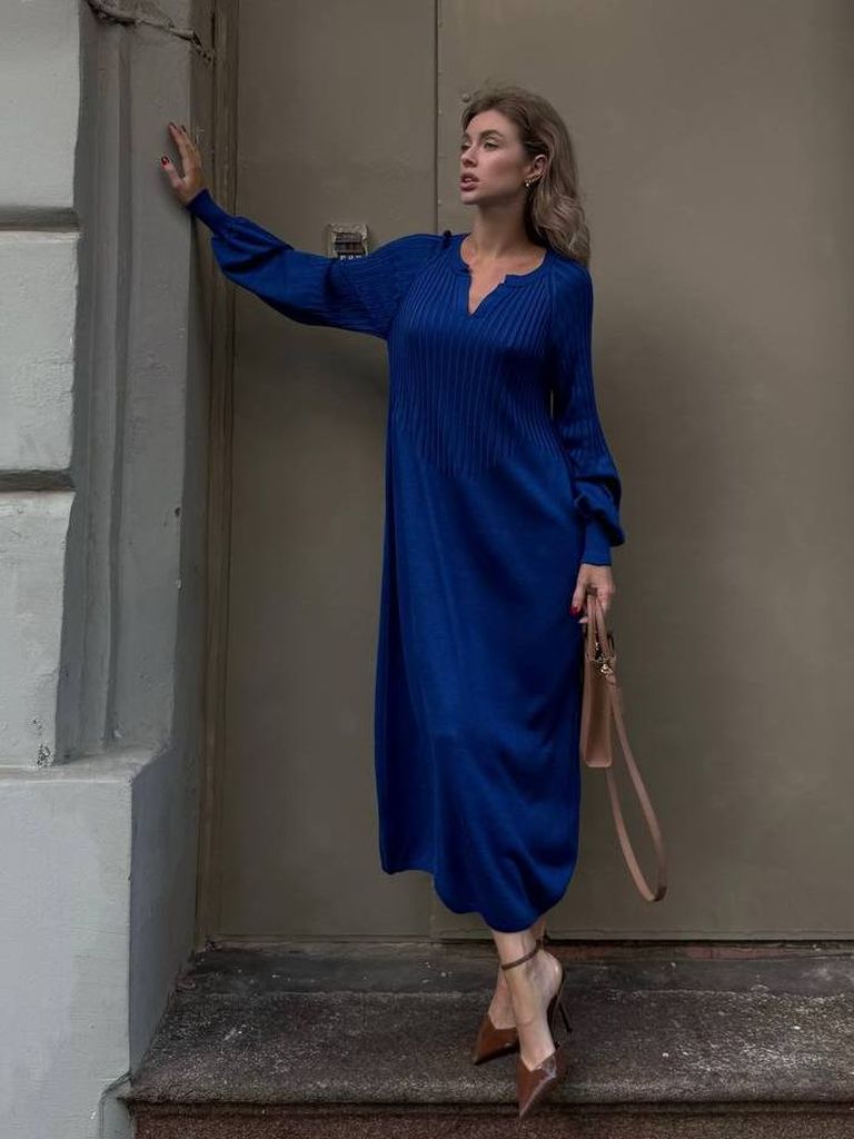 Витончена сукня з в'язаного трикотажу виконана з якісної сумішевої пряжі. У складі бавовна, що надає м'якості, кашемір та меринос, який зігріває в холодну пору року. Цікава модель нетривіального дизайну. Посадка вільна та розслаблена, не облягає. Акуратний V-подібний виріз декольте неглибокий та фіксований. Верх виробу виконаний у в'язальній техніці гумка. Рукави комбіновані, об'ємні, з широкими манжетами. Низ оформлений тонкою в'язаною гумкою. Замовити та купити в'язана сукня міді з мериноса та кашеміру недорого можна в нас накладним платежем з передоплатою на доставку. Відправляємо в Київ, Дніпро, Житомир, Львів, Запоріжжя, Тернопіль, Одесу, Івано-Франківськ, Суми, Кропивницький, Полтаву, Черкаси та будь-який населений пункт України.