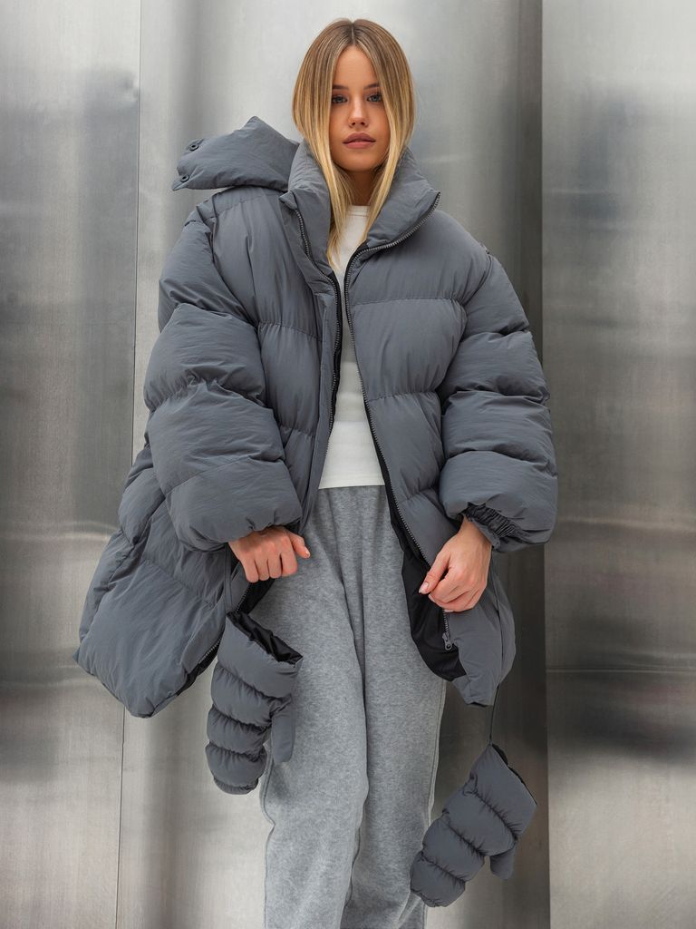 Зимовий пуховик об'ємного силуету з інноваційним наповнювачем зі штучного лебединого пуху. Легкий за вагою, не відчувається на тілі, дуже теплий. Тканина плащівка має злегка жату фактуру, за рахунок чого не мнеться додатково та не потребує особливого догляду. Практичний темний колір для мокрої та брудної погоди. Пуховик легкий в догляді: очистити від незначних забруднень можна за допомогою вологої тканини. Актуальна довжина цього сезону - середня, закриває сідниці. Така довжина чудово виглядає як з джинсами, так і з сукнями чи спідницями. Модний оверсайз силует зі спущеними плечима додає розслабленого вигляду. Пуховик застібається на металеву блискавку. Висока горловина стійка надійно захищає від вітру та морозу. Є з'ємний капюшон на кнопках. Рукави на манжетах. В комплекті є рукавиці. Замовити та купити графітовий жіночий зимовий пуховик середньої довжини оверсайз силуету з рукавицями недорого можна в нас накладним платежем з передоплатою на доставку. Відправляємо в Київ, Дніпро, Житомир, Львів, Запоріжжя, Тернопіль, Одесу, Івано-Франківськ, Суми, Кропивницький, Полтаву, Черкаси та будь-який населений пункт України.