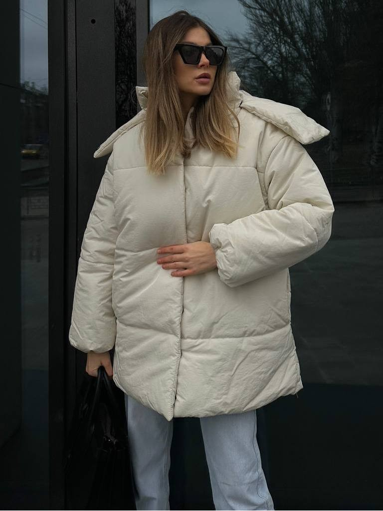 Дуже теплий пуховик у гарному кольорі айворі на холодну зиму. Об'ємний, затишний, практичної довжини. Можна носити з поясом та без. Глибокий каптур надійно захистить від вітру. Дизайн дозволяє складати повсякденні міські образи із джинсами та спортивними костюмами, а також використовувати для заміського відпочинку, поїздок у гори.