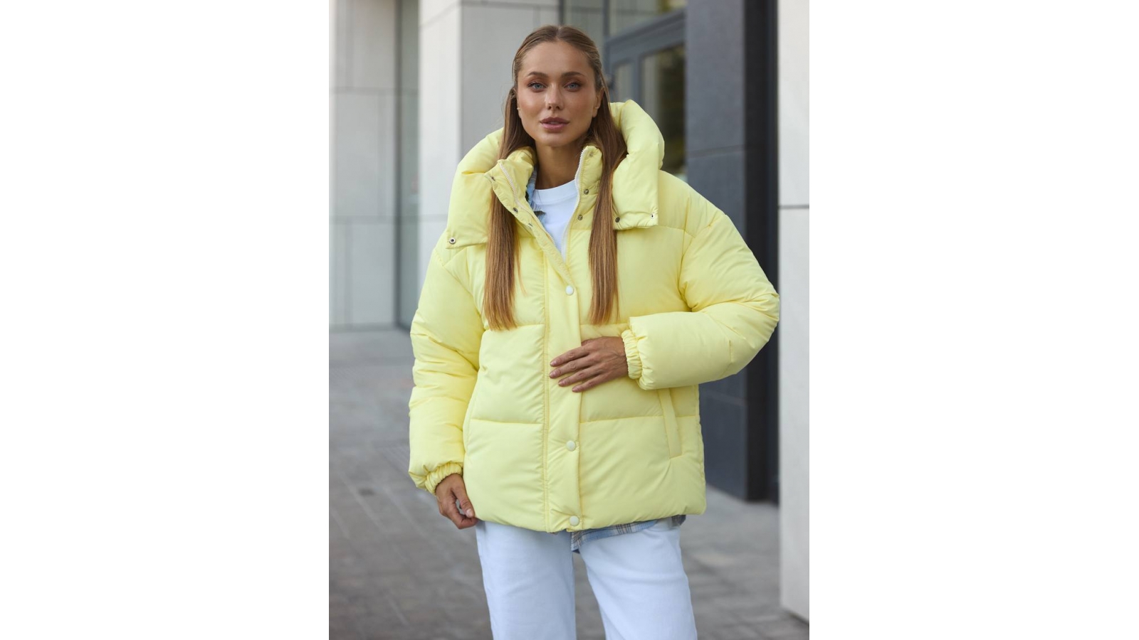 Пуховик у ніжному світло-жовтому відтінку подарує сонячний настрій навіть у найпохмуріші зимові дні. Матовий верх із якісної плащової тканини виглядає стильно й стримано, легко поєднується з базовими кольорами гардероба. Наповнювач - сучасний екопух, який дарує легкість та тепло навіть при морозах до –25°C, не втрачаючи форми й об’єму. Глибокий капюшон захистить від вітру та снігу, а подвійна застібка на блискавку і кнопки забезпечує максимальний комфорт. Дві зручні кишені спереду, а також манжети на резинках, які утримують тепло всередині, роблять цей пуховик практичним і стильним вибором для зими.