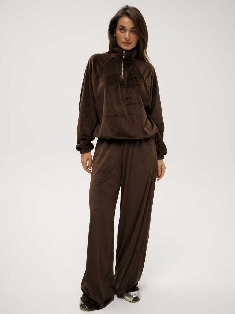 Шоколадний велюровий костюм створений у трендовому відтінку, який