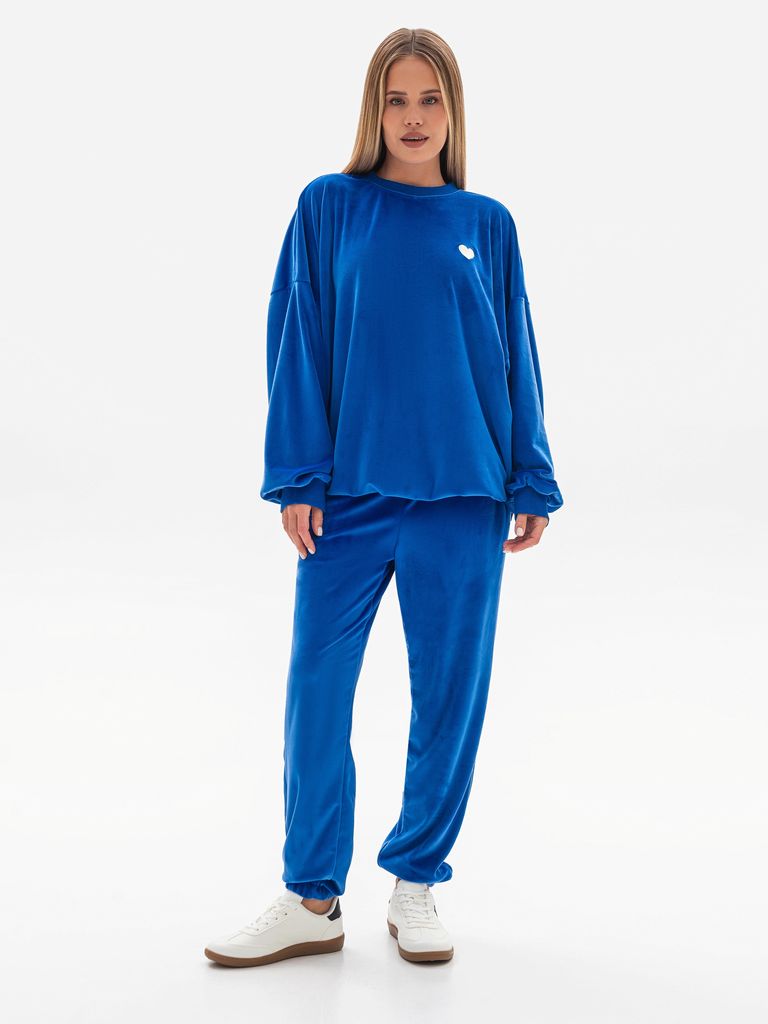 Замовити та купити синій велюровий костюм з подовженим світшотом недорого