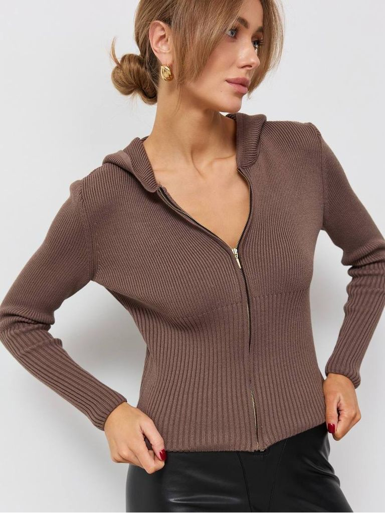 Напівприталений крій забезпечує зручність рухів, водночас акуратно підкреслюючи фігуру. Металева блискавка високої якості не лише функціональна, але й додає кофтині стильного вигляду. Трендовий дизайн робить її універсальним вибором як для повсякденних, так і для більш елегантних образів.