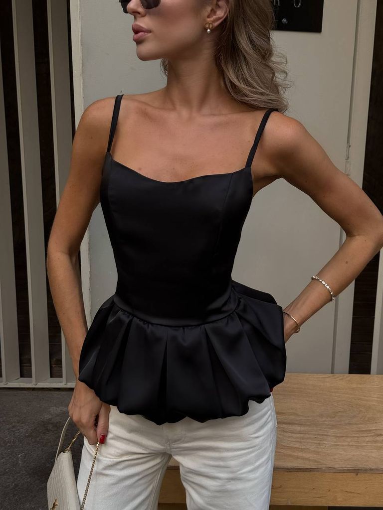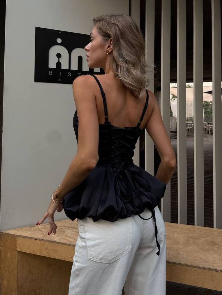 Сатиновий топ на бретелях з баскою створений для образів, де поєднується жіночність і виразний силует. Модель виконана з щільного якісного сатину, що не просвічує і приємно лягає на тіло. Баска-балон тримає форму, додаючи об’єму та створюючи акцент на талії. Тонкі бретельки з регуляторами дозволяють відкоригувати довжину, а широка корсетна шнурівка на спині допомагає ідеально налаштувати посадку під фігуру. Завдяки конструкції топ комфортно носити як власницям невеликого бюсту, так і дівчатам із більш пишними формами. Цей топ підходить для вечірніх та повсякденних виходів, поєднується з класичними спідницями, широкими брюками або джинсами для стильного контрасту.