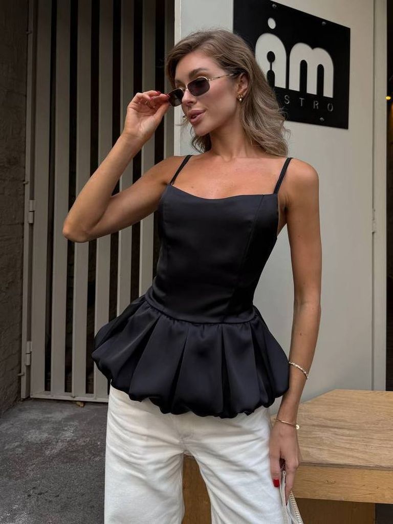 Замовити та купити сатиновий топ на бретелях з баскою недорого можна в нас накладним платежем з передоплатою на доставку. Відправляємо в Київ, Дніпро, Житомир, Львів, Запоріжжя, Тернопіль, Одесу, Івано-Франківськ, Суми, Кропивницький, Полтаву, Черкаси та будь-який інший населений пункт України.