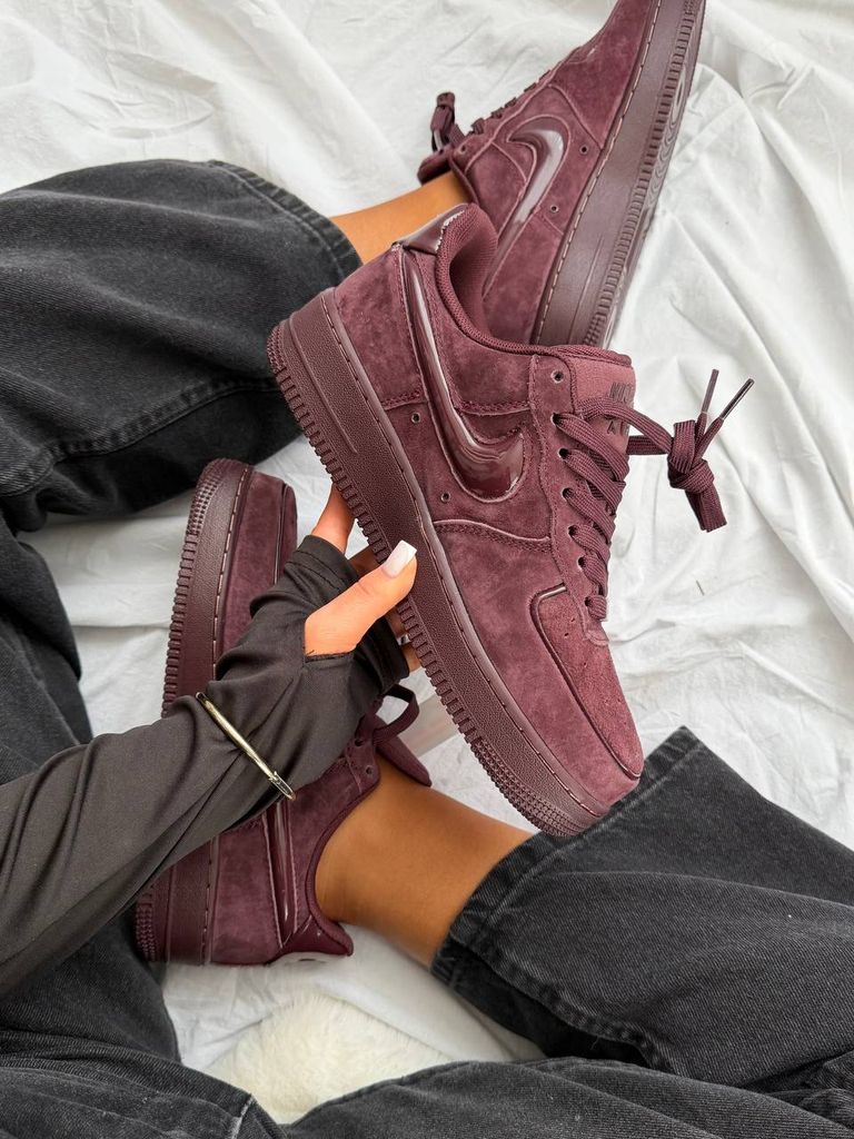 Кросівки Nike Air Force 1 07 Burgundy Crush виконані повністю з натуральної замші в насиченому благородному бордовому кольорі холодного відтінку бургунді. Глибокий колір виглядає виразно та дорого, додає образу характеру й легко поєднується з базовим гардеробом. Випуклий глянсовий логотип ефектно контрастує з м’якою матовою фактурою замші, підкреслюючи стиль моделі. Пласка платформа з незначним підвищенням у зоні п’ятки має середню товщину, забезпечує комфорт і стабільність під час ходьби. Модель зручна, універсальна та завжди залишається актуальною базою для міських образів.